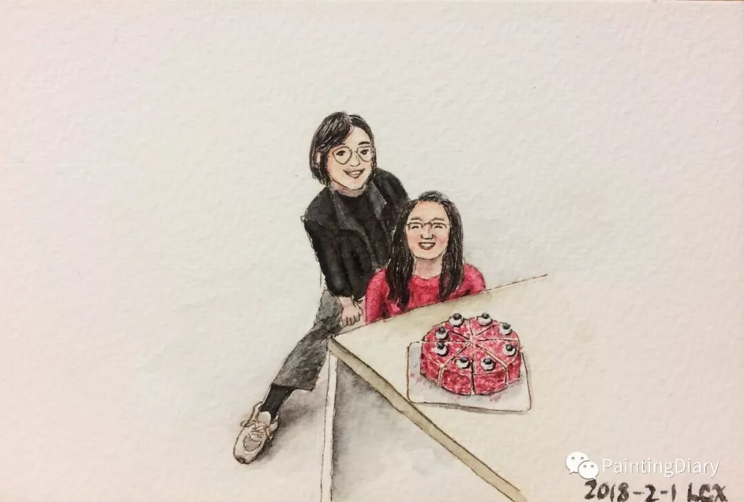 今天画的是前一阵过生日拍的一张照片。