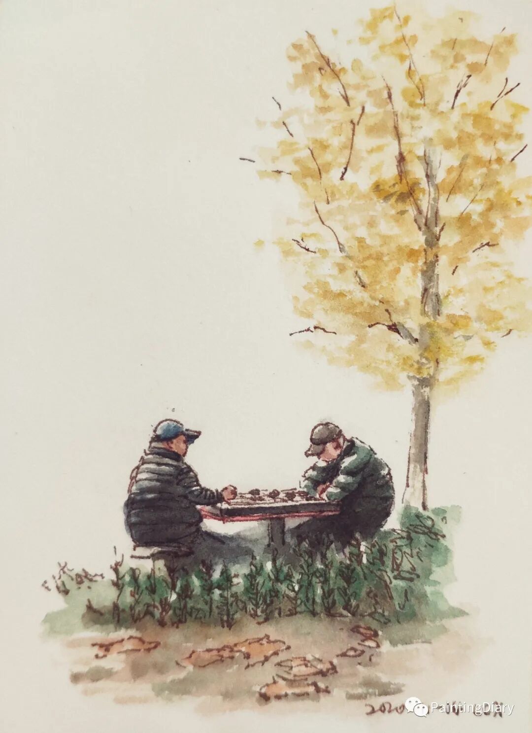 昨天出门看到两个大爷穿着羽绒服在院子里下棋,