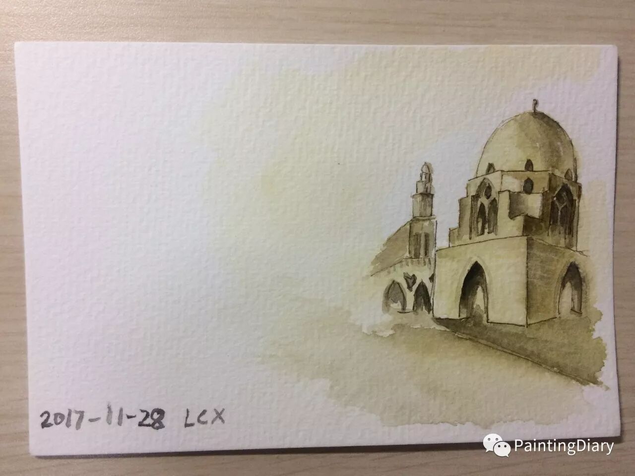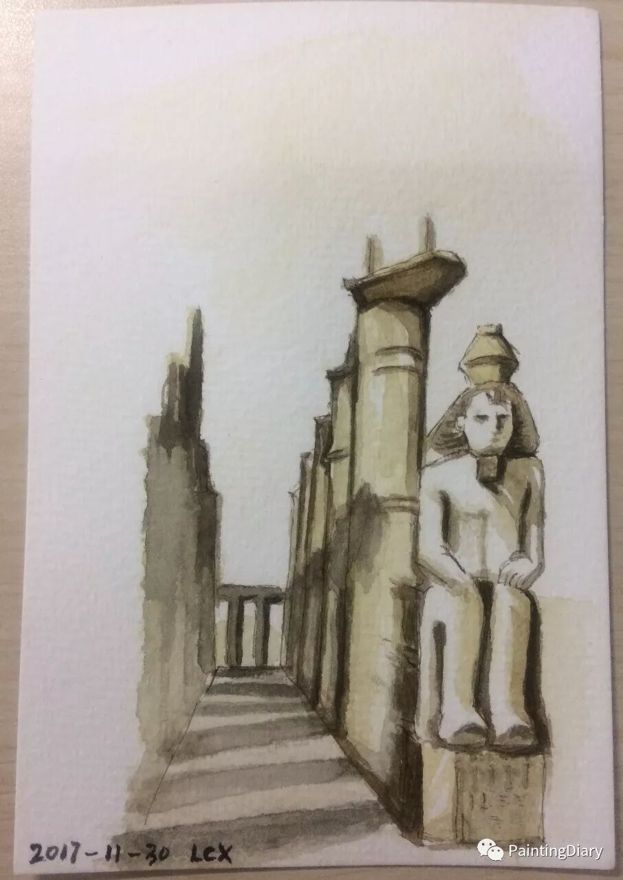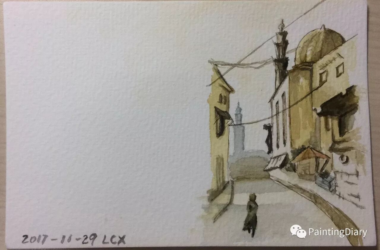 从高中就很向往埃及,希望以后能有机会在埃及写生。每张都只画了一个角落,旁边空出来写地址。