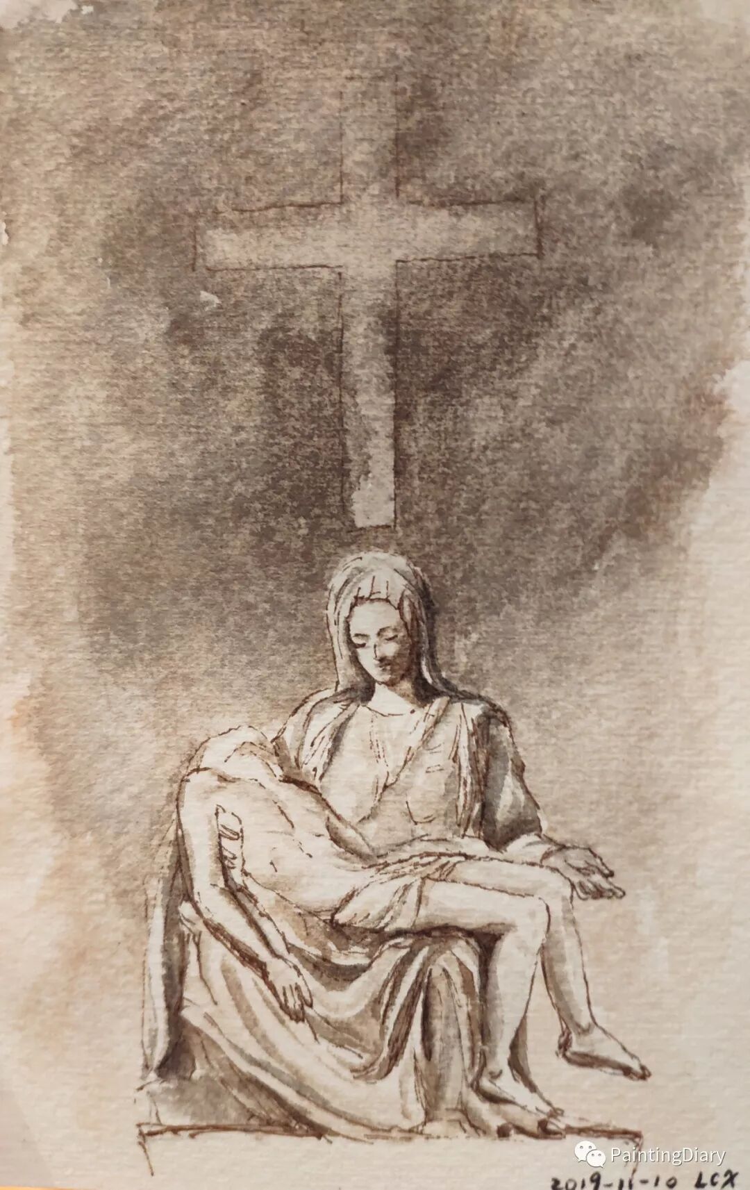 今天画中展现的是圣彼得大教堂中的雕塑《圣殇》。